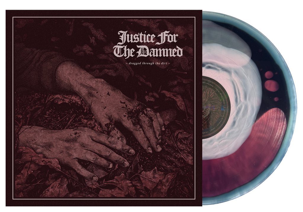 Vinyl pressing of Justice For The Damned's Dragged Through The Dirt handmade by Breakthrough Records x The Dream Division with a purple & black liquid haze. Limited to 25 each